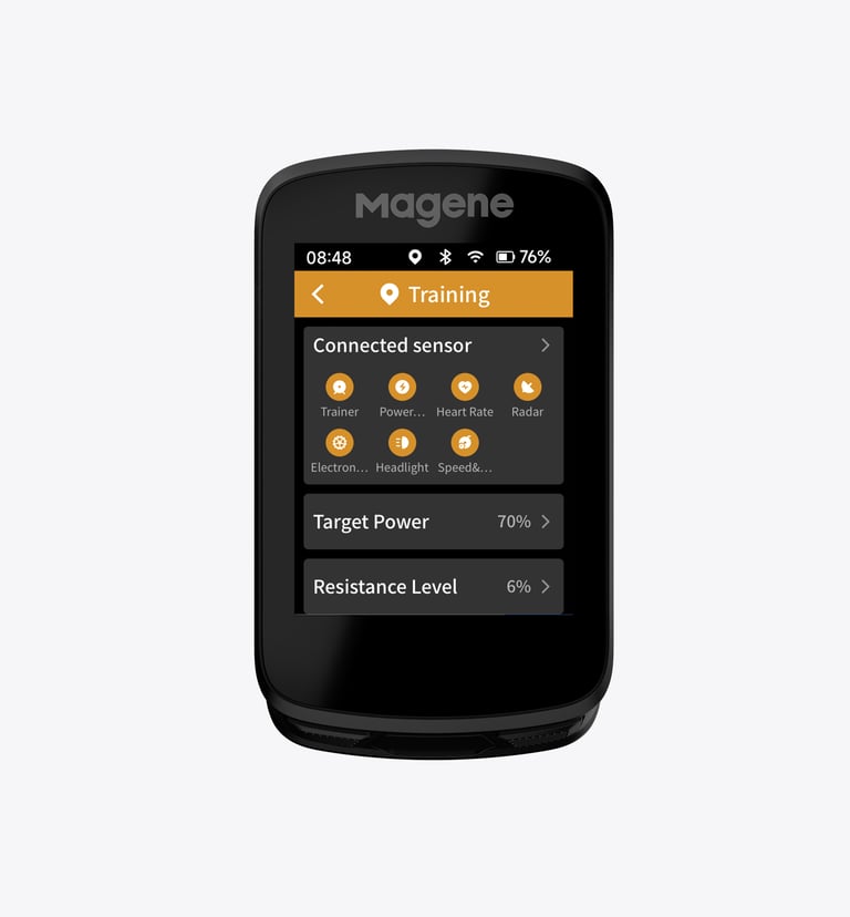 Si tienes un radar (Varia o Magene L508), potenciómetro o cambios electrónicos (SRAM eTap / Shimano Di2), el C506 los reconoce al instante.